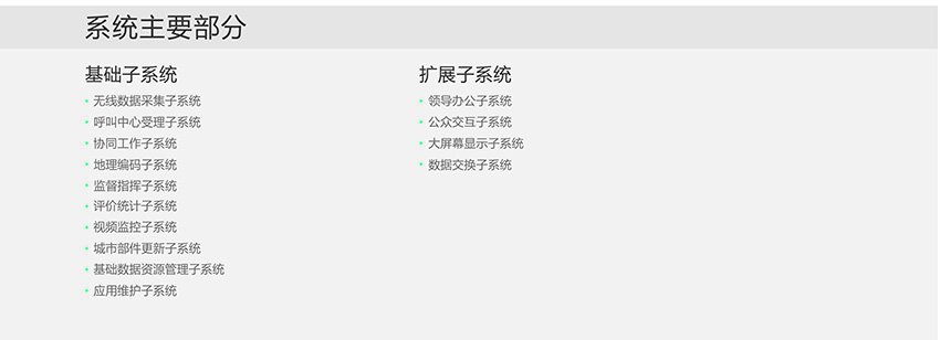 數字城管理系統要電子政務專用網絡和無線通訊網絡, 以數字城市技術為依托,集成基礎、單元網格、部件和事件、地理編碼等多種數據資源,通過多部門信息共享、協同工作,實現對城市市政工程設施、市政公用設施、市容環境與環境秩序的網絡化監督和管理; 并且通過城管系統的建設,實現與政府相關部門的應用系統之間業務數據的信息交換,達到信息共享和協同工作,推進城市管理達到主動、精確、快速和統一的目標,真正整合優化政府信息資源和政府數據庫群,建立覆蓋全時段、全范圍的城市管理與運營體系。